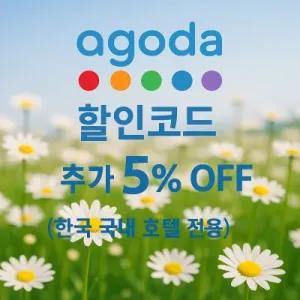 - 할인 요약 : 아고다 할인코드 한국 호텔 숙소 5% 추가 할인 쿠폰 코드