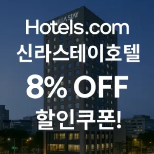 10% 할인코드를 놓쳤어도 걱정 마세요! 호텔스닷컴에서 신라스테이 호텔 전용 8% 할인코드 를 이용해 여전히 혜택을 누릴 수 있습니다.
