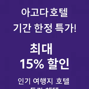 헐, 여행 계획 중이라면 이 소식 진짜 놓치면 아쉬울지도 몰라요. AGODA가 이번에 기간한정으로 최대 15% 할인 세일을 시작했거든요! 숙소 예약할 타이밍 잘 못 맞추면 가격 차이 어마어마하잖아요. 그래서 이번 프로모션은 완전 꿀입니다.
