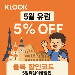 - 할인 요약 : KLOOK 할인코드 5월 유럽 여행 5% 최대 2만원 할인 프로모션!