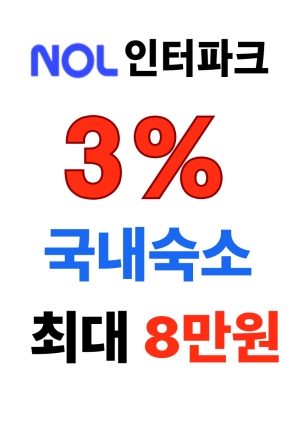 - 할인 요약 : NOL 인터파크투어 국내호텔 3% 할인쿠폰 최대 5만원 할인 프로모션