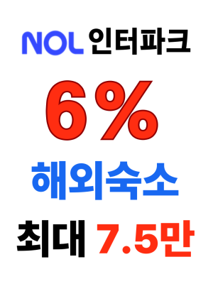 해외여행 준비 중이라면 지금이 기회! 인터파크투어 NOL 할인쿠폰으로 해외 숙소 예약 시 6% 할인을 받고 최대 75,000원까지 절약해보세요 매일 선착순으로 열리는 특별 혜택, 놓치지 마세요!