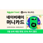 라쿠텐 트래블 네이버페이 57% 특가 + 추가 20% 할인쿠폰 제공. 네이버페이로 결제하면 추가 할인 혜택! . 할인 예약 기간: 2025년 3월 1일 ~ 2025년 3월…