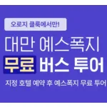 클룩 대만 무료 셔틀 프로모션 – 한정 특가 이벤트프로모션 기간: 2025년 4월 1일 ~ 2025년 6월 30일 특별 혜택: 대만 주요 관광지 무료 셔틀버스 이용 가능…