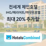 HotelsCombined 체인호텔 실시간 특가 20% 할인 쿠폰호텔 어디서 예약하세요? HotelsCombined는 전 세계 수많은 사이트를 한 번에 비교해줘서, 체인호텔…